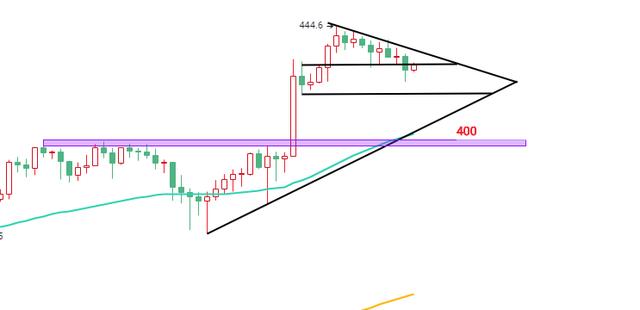 435和405属于三角区间上下趋势压制和支撑 ,417属于中性区间 ,短期的多空的分界线。