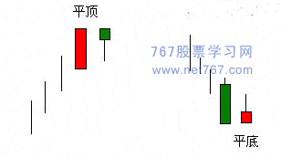 在上升市场中,当几根K线的“最高点”不相上下时,就形成了一个平头顶形态。在下降市场上,当几根K线的“最低点”基本一致时,就形成了一个平头底形态。