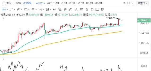 BTC / USDT货币对的价格从昨晚21:00到23:00显示出积极的迹象,从11870美元跃升至12448美元的盘中高点,表明购买压力很大。然而,剧烈的拉幅导致动能的衰竭,动能在不久后发生了变化,导致行情有了下行修正的需求。