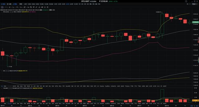 行情分析:昨晚BTC经过日间的持续盘整过后连续3小时放量突破12000、12300以及12400几个关键阻力,最终在测试12500失败后进入回撤整理。目前价格在12200附近运行。们从四小时图上看,布林带已慢慢缩口,币价被强势压制,目前价格在12250位置附近,短期多头难以上涨,空头有进一步上行的可能。个人认为,后续重点关注12000支撑位置,若是今日收线价格稳定在其中,那么价格大概率还有下跌,往下延伸的趋势,可能会跌破新高。附图各项指标都正缓慢的伸缩口,所以,从总的行情分析来分析,目前币价走势处于一个下行延伸的姿态,目前操作建议以空单为主。
