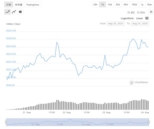 昨天YAMV1完成了向YAMV2的迁移。YAM本身具备炒作的空间和社区,YAM结合了YFI和AMPL的特性,在BUG出现后,依然能满血复活,生命力很强,很旺盛。YAMV2一完成,YAMV2就开始搞事情,一天内从13美元一路涨到20美元,让很多人对YAM刮目相看。