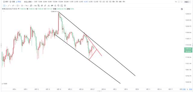 开空:在确认了上方11500的压制之后,我们在这个附近去进场空单是最合适的,止损放在11500上方,目标看11300-11200,今天还是参考昨天的策略,反弹就是做空。