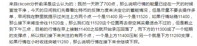来自ckcoin分析俞泽是这么认为的:昨天晚上研盘,通过日线和周线的形态多次去断定,11650附近是个很强的压力位,而今天的走势在早上承压11500之后确认下跌之后,那么我的思路就很简单了,那就是空头强势多头反弹无力,所以我还是看空的一个思路。