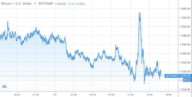 关于美联储政策更新的消息传出后,比特币的价格立即上涨至11600美元的高位,随后立即遭到拒绝,导致其跳水至11200美元的低点。