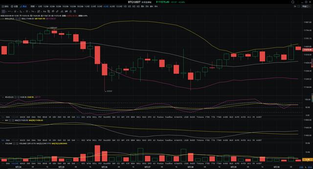 行情分析:昨日比特币价格由于上方阻力强压原因,价格上行触及11580美金后受阻后,币价在百余点区间之内上下波动,目前行情走势总算突破压力价格,币价最高到11647美金附近,日内且能站稳11550附近位置,币价可能还会有一波上行。四小时图来看,币价遇压后有所回调,但回调的力度不是很大,目前币价震荡运行,徘徊在11600一线附近,运行在各均线上方,各均线交叉上扬,在币价下方形成支撑。小时图来看,价格通道势能良好,昨晚五阳转五阴的走法再次探底,趋势偏于W形态有再次探高需求。附图KDJ三线拐头向上反散,MACD快慢线在0轴上方缩量粘合,多头量能有待酝酿。实时操作上而言,建议回踩接多即可,进场带好风控。